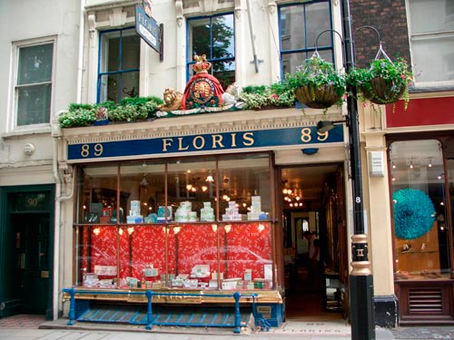Floris es otra perfumería de lujo que tiene tienda, desde 1730, en el númerol 89 de Jermyn Street, de Londres. 280 años después la misma familia sigue operando la firma que es proveedora oficial de la Casa Real y perfumero de la Reina Isabel.
